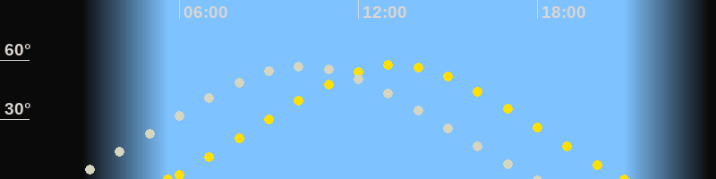 Höchster Sonnenstand (Kulmination)13:16 Uhr (h = 57.6°)