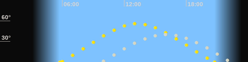 | Höchster Sonnenstand (Kulmination) | 13:16 Uhr (h = 55.8°) |