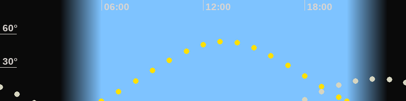 | Höchster Sonnenstand (Kulmination) | 13:14 Uhr (h = 53.4°) |