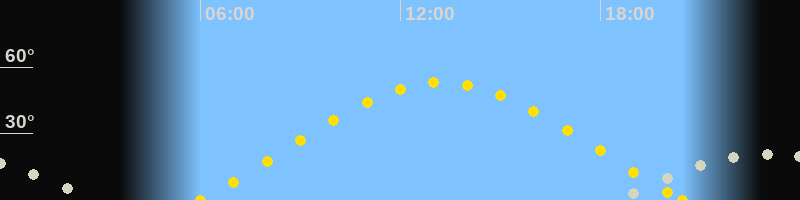 | Sonnenaufgang | 06:00 Uhr im Nordosten (αAz = 66.9°) |
