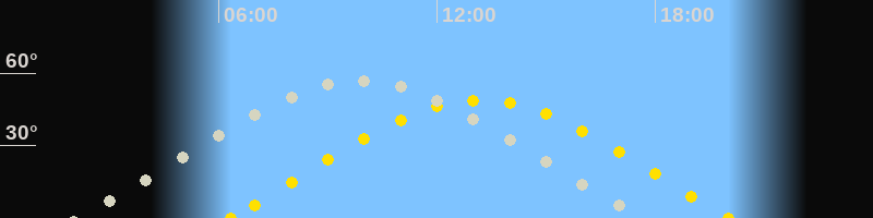 | Sonnenaufgang | 06:19 Uhr im Osten (αAz = 74.1°) |
