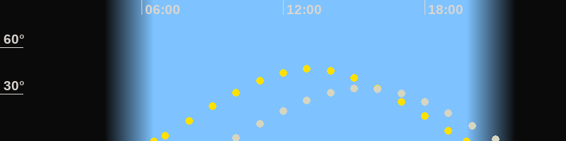 | Sonnenaufgang | 06:30 Uhr im Osten (αAz = 78.1°) |