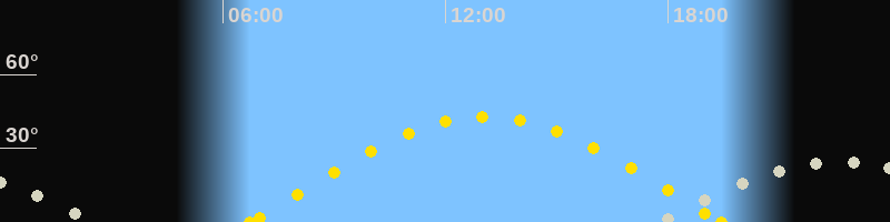 | Höchster Sonnenstand (Kulmination) | 13:06 Uhr (h = 42.8°) |