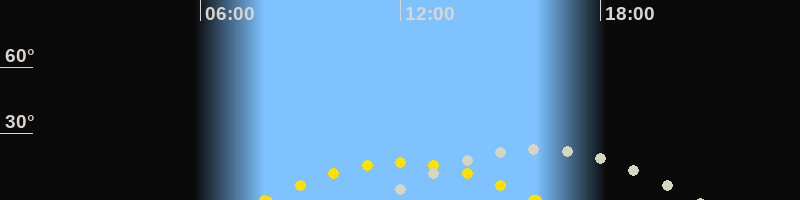 | Höchster Sonnenstand (Kulmination) | 12:00 Uhr (h = 16.9°) |