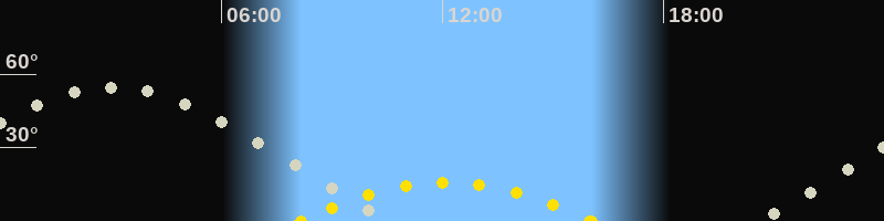 | Höchster Sonnenstand (Kulmination) | 12:06 Uhr (h = 15.9°) |