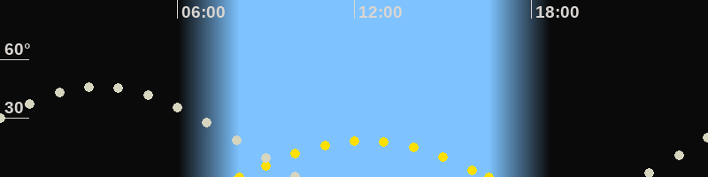 | Höchster Sonnenstand (Kulmination) | 12:20 Uhr (h = 18.4°) |