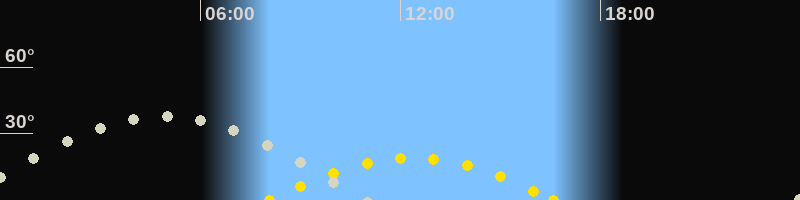 | Höchster Sonnenstand (Kulmination) | 12:20 Uhr (h = 18.8°) |