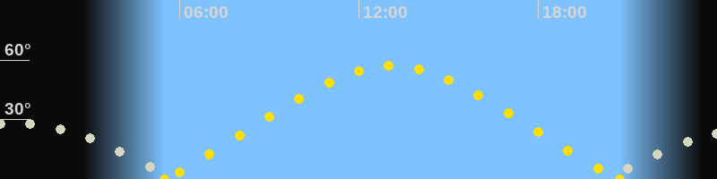 | Sonnenaufgang | 05:30 Uhr im Nordosten (αAz = 60.6°) |