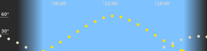 | Höchster Sonnenstand (Kulmination) | 13:08 Uhr (h = 62°) |