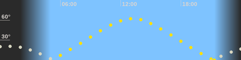 Höchster Sonnenstand (Kulmination)13:09 Uhr (h = 62.2°)