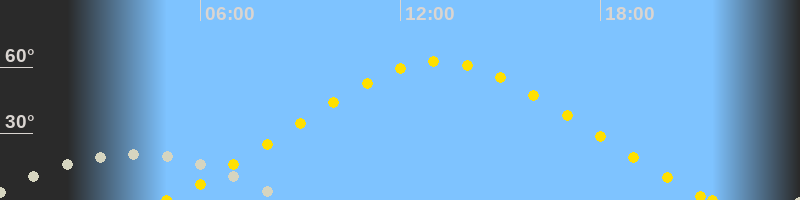 | Höchster Sonnenstand (Kulmination) | 13:10 Uhr (h = 62.5°) |