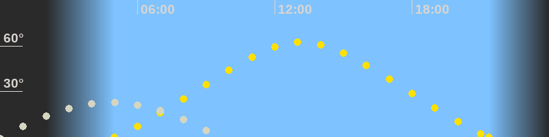 | Höchster Sonnenstand (Kulmination) | 13:10 Uhr (h = 62.6°) |