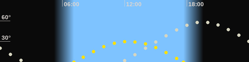 | Höchster Sonnenstand (Kulmination) | 12:23 Uhr (h = 29.9°) |