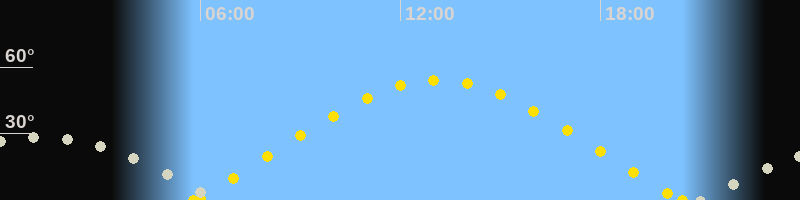 | Höchster Sonnenstand (Kulmination) | 13:07 Uhr (h = 54.1°) |