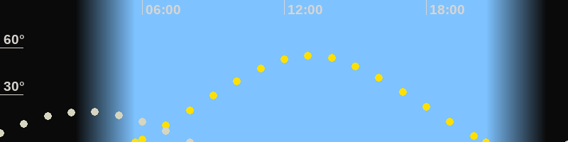 | Höchster Sonnenstand (Kulmination) | 13:07 Uhr (h = 55°) |