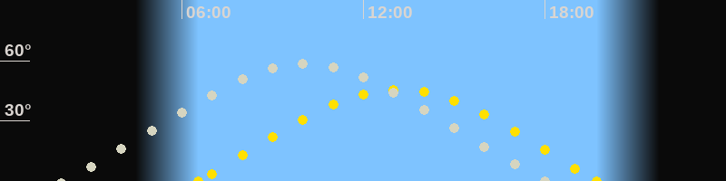 | Sonnenaufgang | 06:33 Uhr im Osten (αAz = 79.1°) |