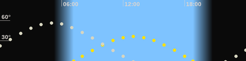 | Höchster Sonnenstand (Kulmination) | 13:00 Uhr (h = 36.4°) |