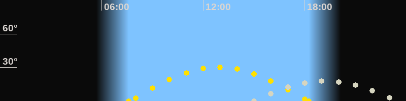 | Höchster Sonnenstand (Kulmination) | 12:55 Uhr (h = 30.3°) |