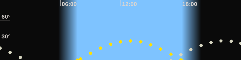 | Höchster Sonnenstand (Kulmination) | 12:55 Uhr (h = 28.8°) |