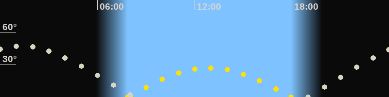 | Höchster Sonnenstand (Kulmination) | 12:54 Uhr (h = 27.1°) |