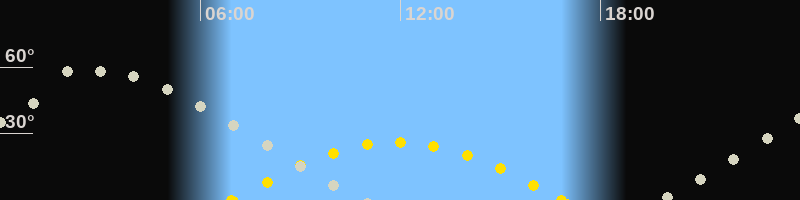 | Höchster Sonnenstand (Kulmination) | 11:54 Uhr (h = 26.1°) |