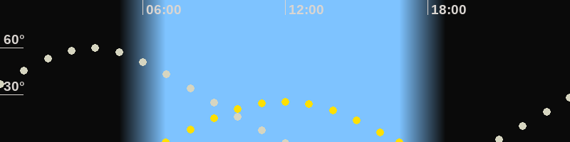 | Höchster Sonnenstand (Kulmination) | 11:54 Uhr (h = 25.7°) |
