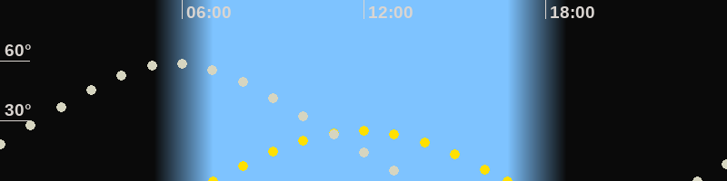 | Höchster Stand (Kulmination) | 05:45 Uhr (h=58.7°) |