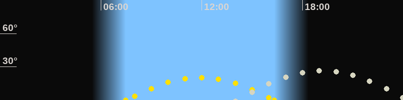 | Sonnenuntergang | 16:20 Uhr im Südwesten (αAz = 240.2°) |