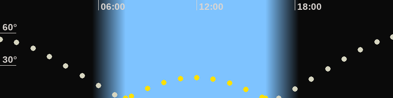 | Höchster Sonnenstand (Kulmination) | 11:56 Uhr (h = 18.9°) |