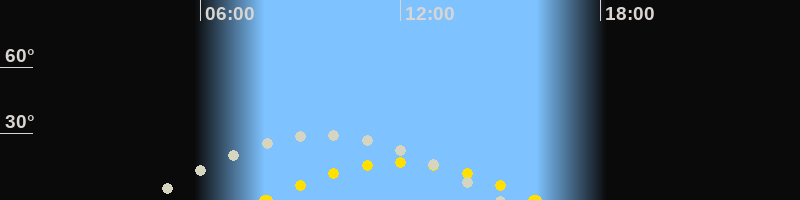 | Höchster Stand (Kulmination) | 09:43 Uhr (h=29.4°) |