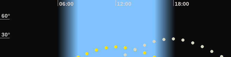 | Höchster Stand (Kulmination) | 17:43 Uhr (h=28.6°) |