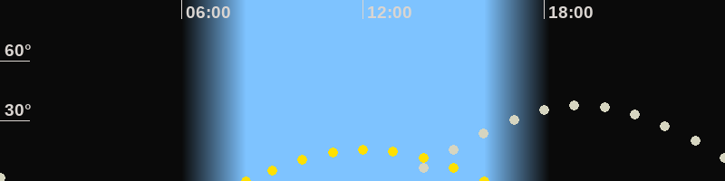 | Höchster Sonnenstand (Kulmination) | 12:05 Uhr (h = 16°) |