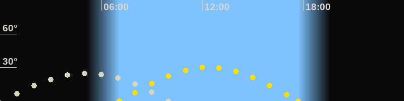 | Höchster Sonnenstand (Kulmination) | 12:23 Uhr (h = 30.2°) |