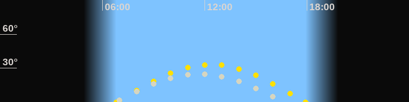 Höchster Sonnenstand (Kulmination)12:21 Uhr (h = 33.2°)