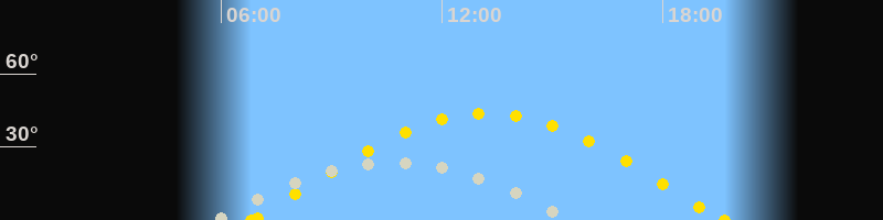 | Höchster Sonnenstand (Kulmination) | 13:14 Uhr (h = 43.8°) |