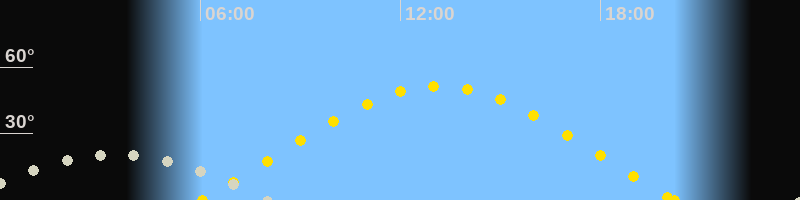 | Sonnenaufgang | 06:04 Uhr im Osten (αAz = 69.9°) |