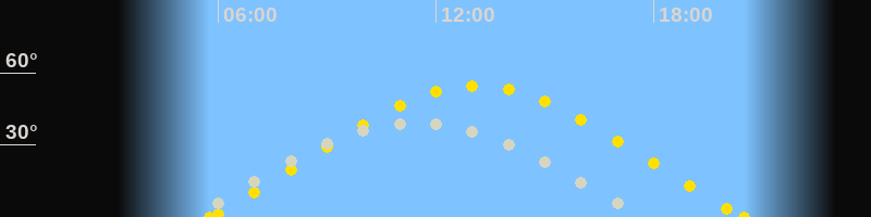 | Höchster Sonnenstand (Kulmination) | 13:07 Uhr (h = 54.7°) |