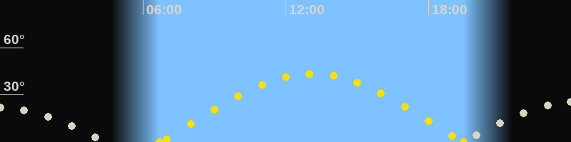 | Höchster Sonnenstand (Kulmination) | 13:06 Uhr (h = 43.4°) |