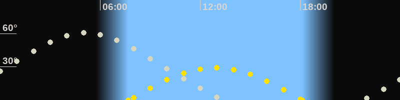 | Höchster Sonnenstand (Kulmination) | 12:55 Uhr (h = 29.3°) |