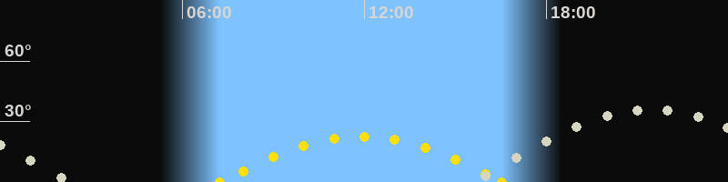 | Höchster Sonnenstand (Kulmination) | 11:54 Uhr (h = 22.7°) |