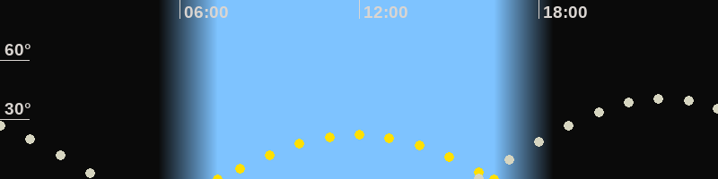 | Höchster Sonnenstand (Kulmination) | 11:54 Uhr (h = 22.4°) |
