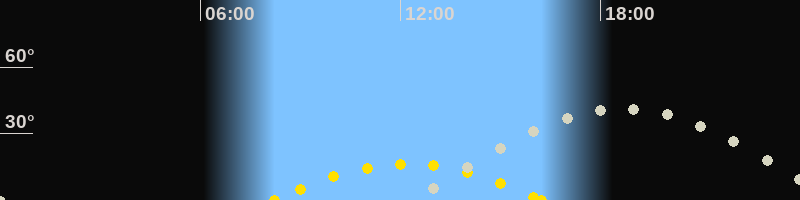 | Höchster Sonnenstand (Kulmination) | 12:14 Uhr (h = 16.4°) |
