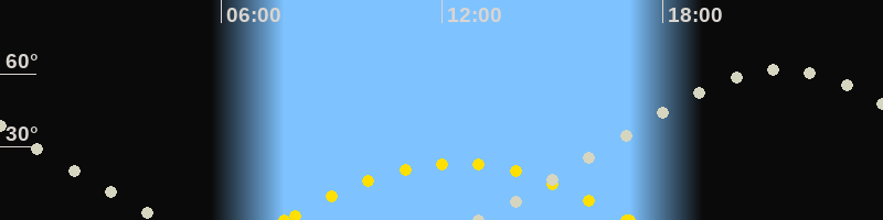 | Höchster Sonnenstand (Kulmination) | 12:24 Uhr (h = 23.3°) |