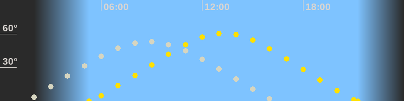| Höchster Sonnenstand (Kulmination) | 13:16 Uhr (h = 60.7°) |