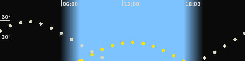 | Höchster Sonnenstand (Kulmination) | 12:54 Uhr (h = 27.7°) |