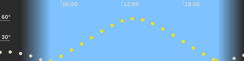 | Höchster Sonnenstand (Kulmination) | 13:10 Uhr (h = 62.5°) |