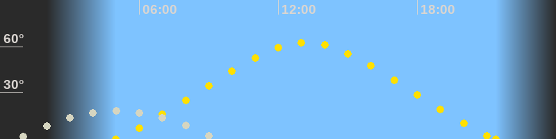 Höchster Sonnenstand (Kulmination)13:11 Uhr (h = 62.7°)