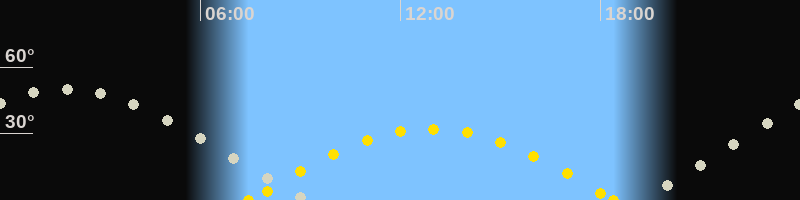 | Höchster Sonnenstand (Kulmination) | 12:57 Uhr (h = 32.1°) |