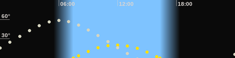 | Höchster Stand (Kulmination) | 06:05 Uhr (h=58.6°) |