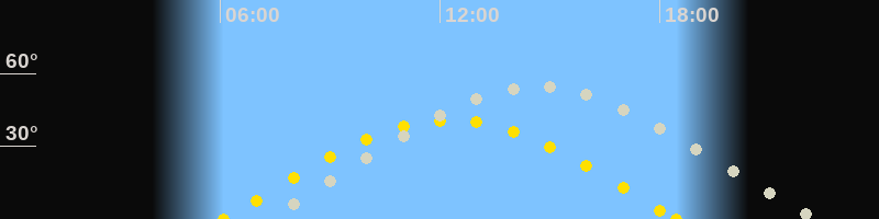 Höchster Stand (Kulmination)14:34 Uhr (h=54.3°)